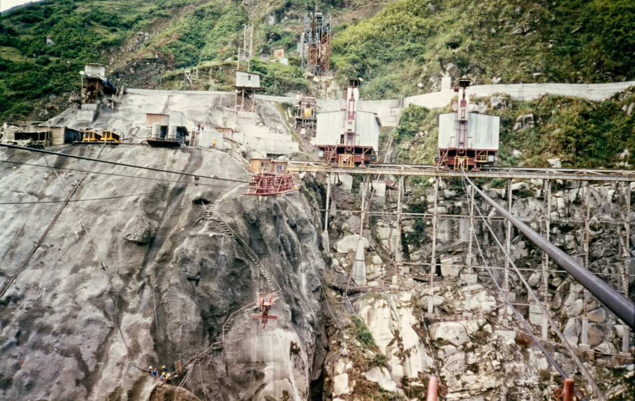 Bei der Thyssenkrupp-Technologie „Schwenkmastanlagen“ werden ein Mast oder auch zwei Masten quer zur Kranachse um bis zu 15° gekippt. Diese Kippbewegung erfolgt über mehrfach eingescherte Seile. Diese werden von einer am Mastfuß angeordneten Schwenkwinde angetrieben. Abhängig davon, ob ein oder zwei Schwenkmasten in Verwendung sind, gleicht der Arbeitsbereich einem Dreieck oder einem Rechteck. Die jeweilige Arbeitsbreite ist abhängig von der Masthöhe.