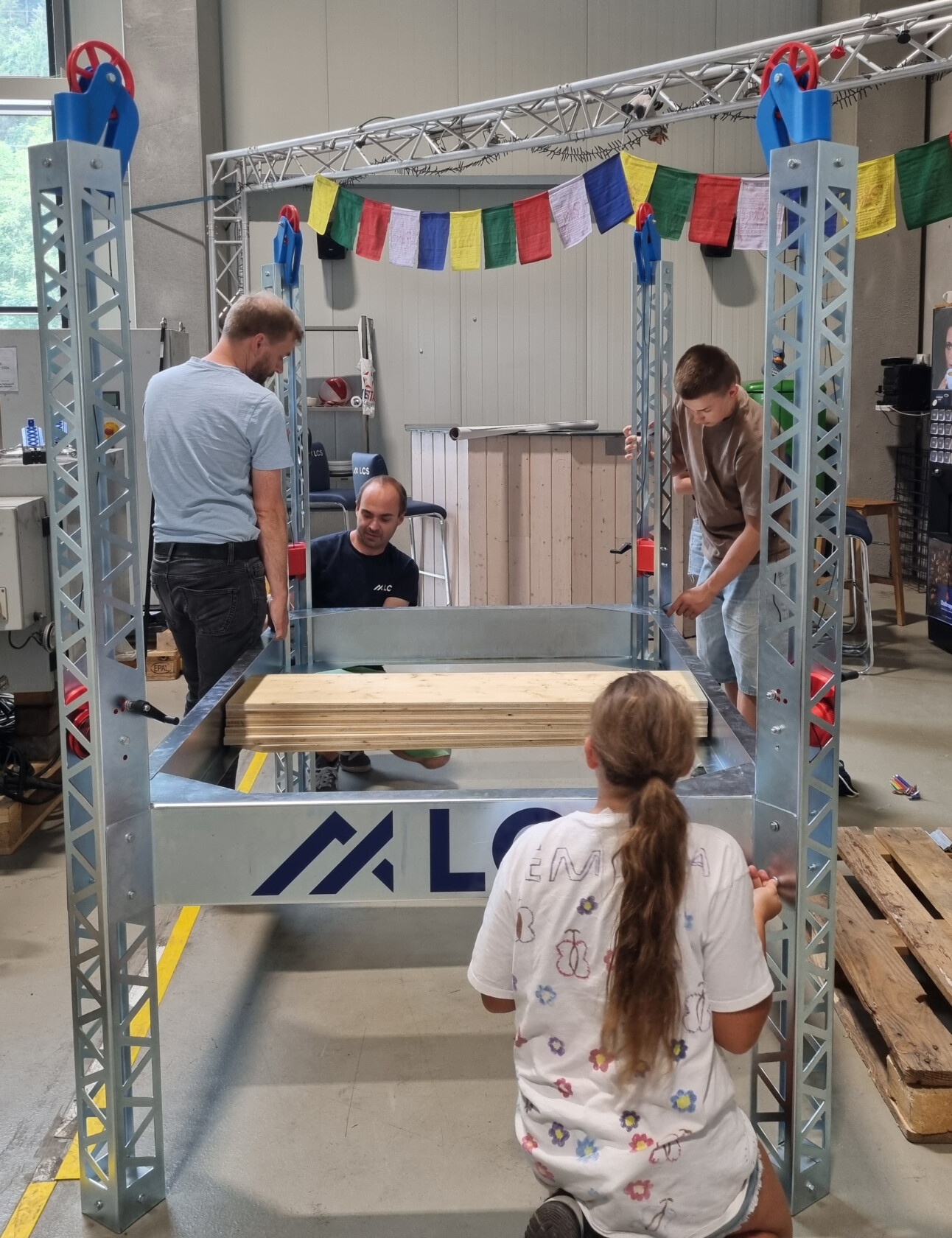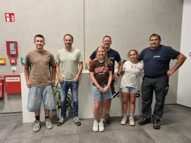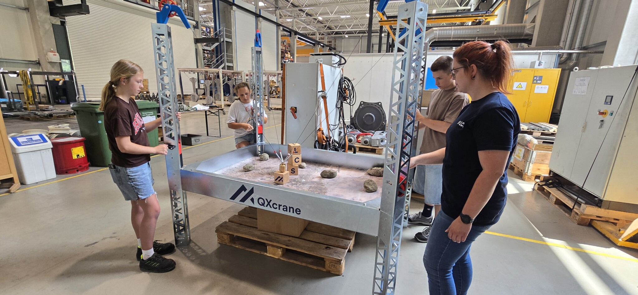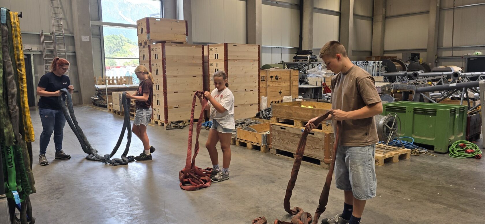 Am Vormittag gab’s eine kurze Einführung und Vorstellung der Firma. Danach bekamen sie einen kleinen Einblick in die verschiedenen Abteilungen. Dort durften die Kids zum Teil auch mit anpacken: So wurden alle Feuerlöscher gecheckt, die Rundschlingen geprüft, der Mini-QXcrane aufgebaut und die Montage unterstützt.