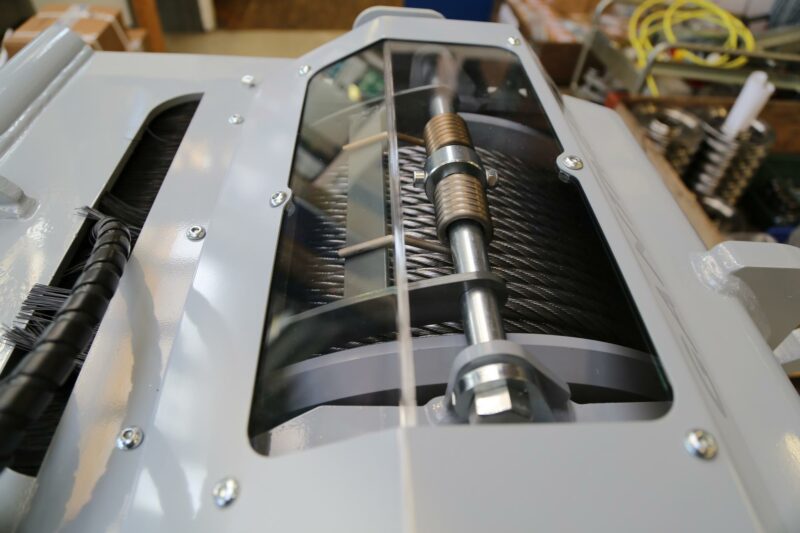 In Auftrag und in Zusammenarbeit mit dem Schreitbaggerproduzenten Menzi Muck, hat LCS eine spezielle Anbauwinde entwickelt, die als Hilfswinde im steilen Gelände eingesetzt werden kann.