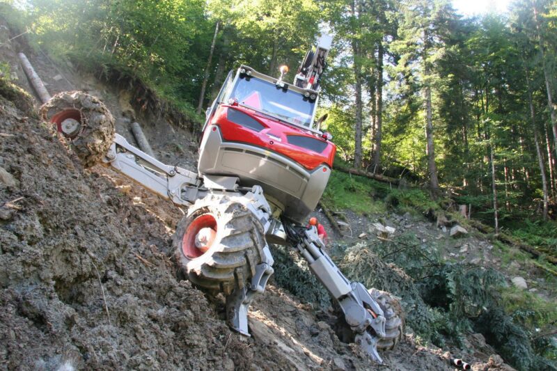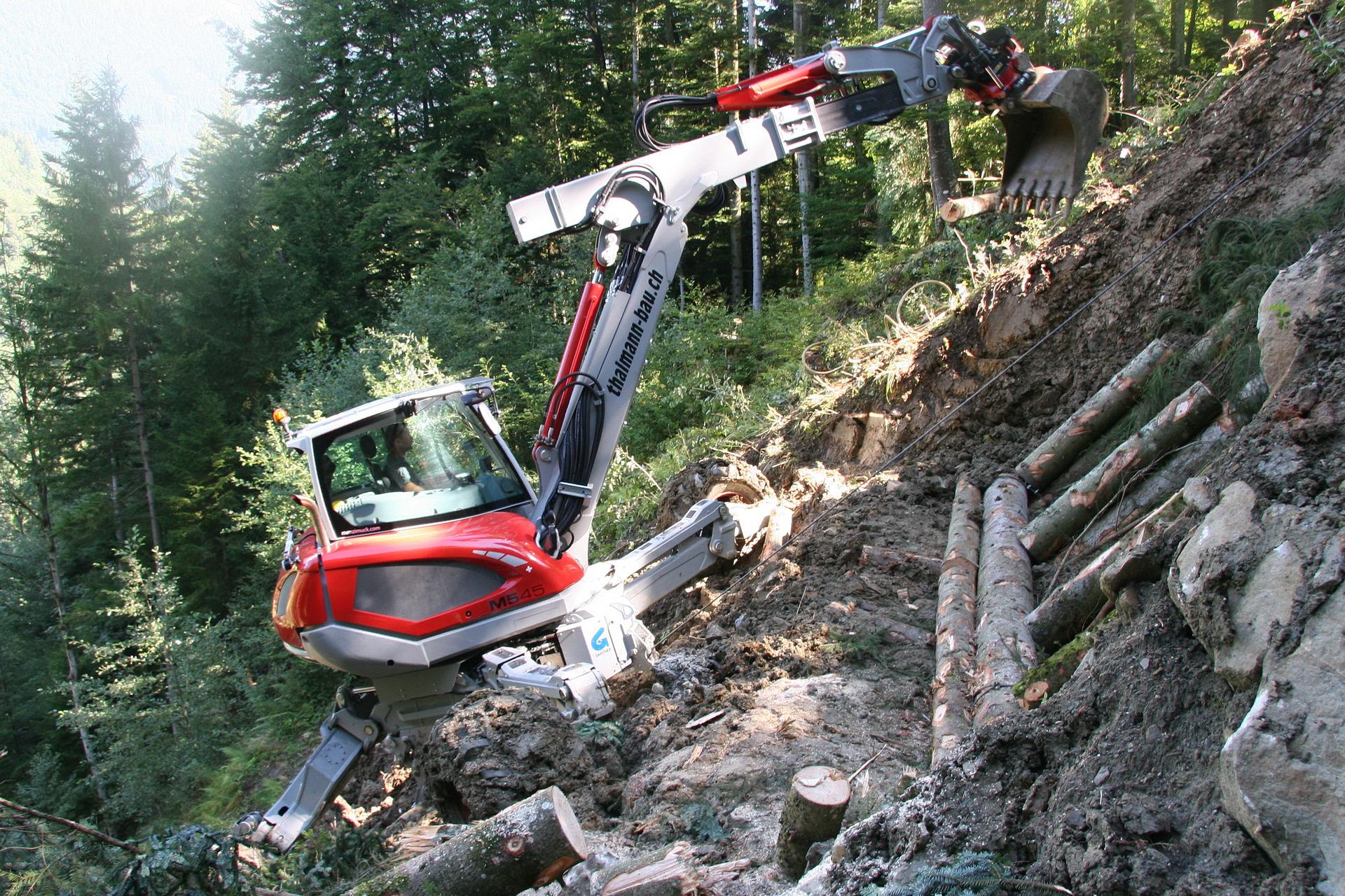 LCS und Schreitbaggerproduzent Menzi Muck entwickeln eine Anbauwinde für Grabarbeiten im steilen Gelände.