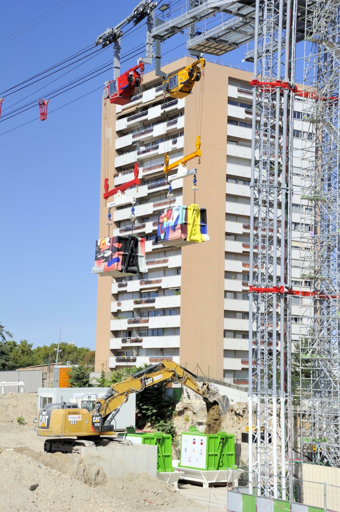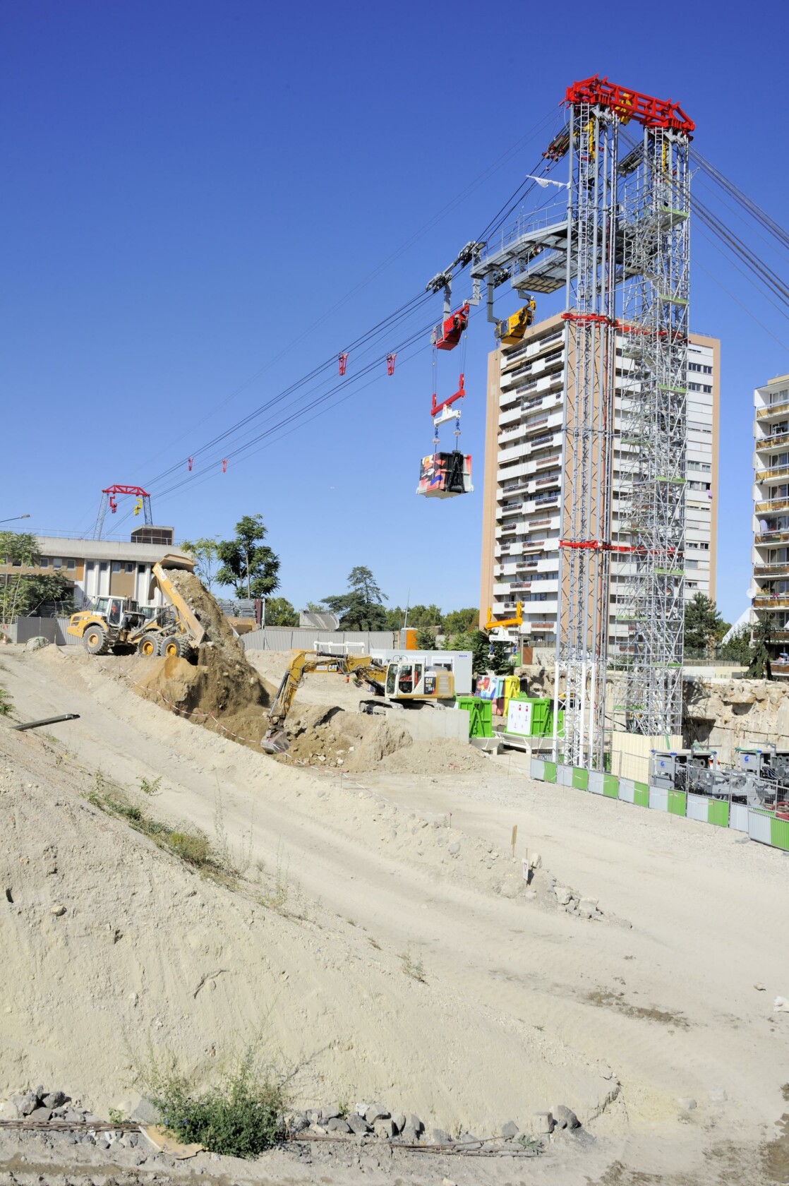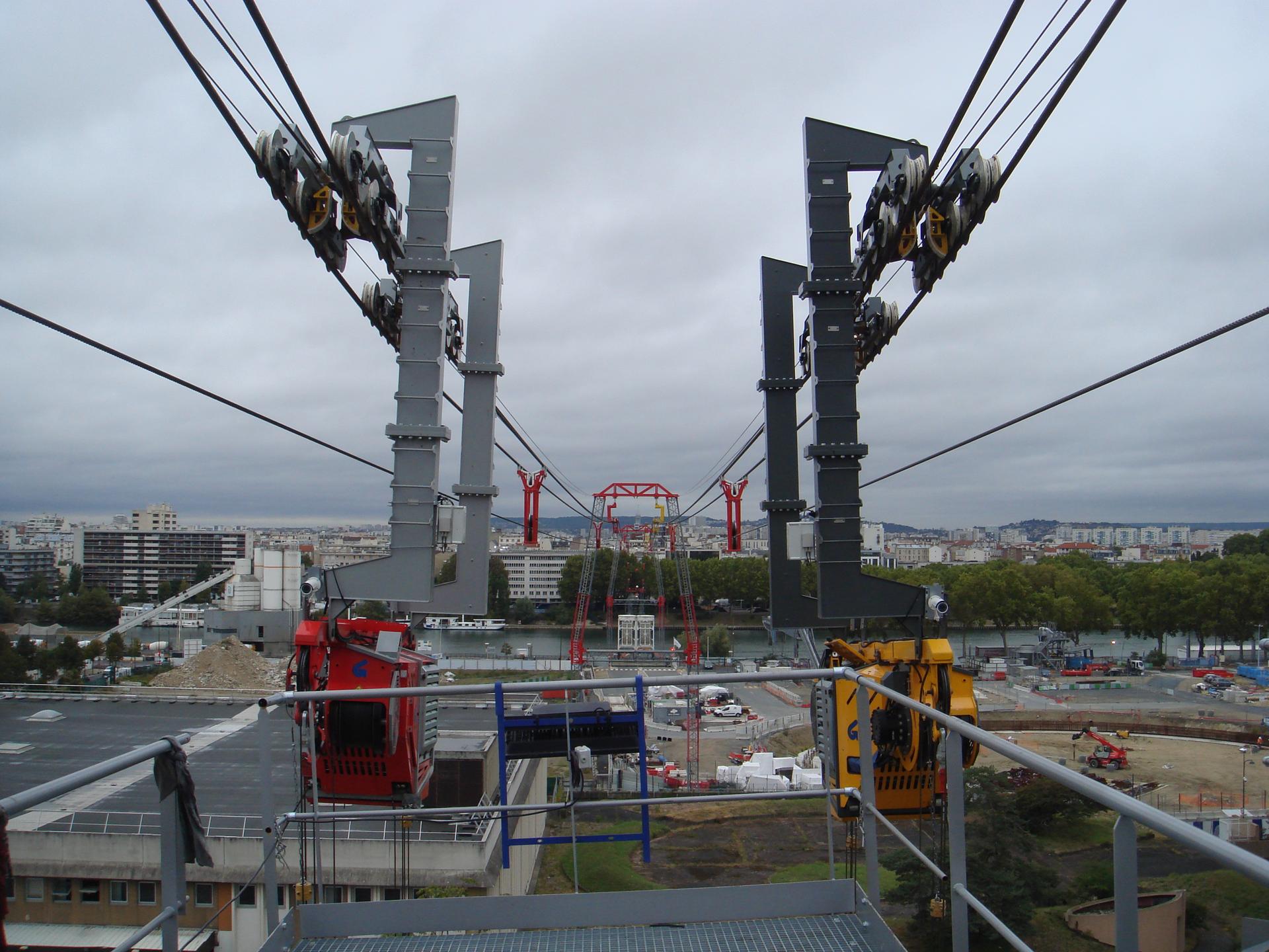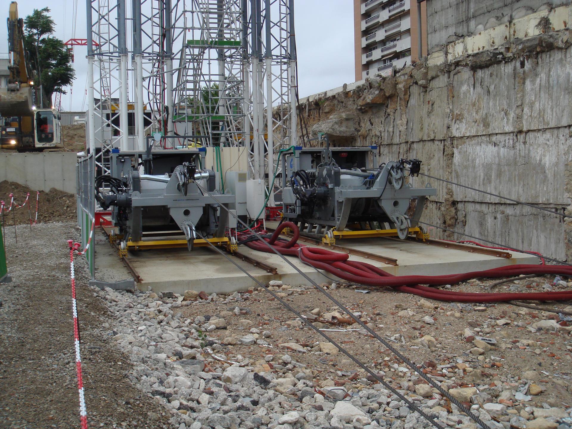 Für den Abtransport von Baumaterial inmitten der Stadt Paris lieferte LCS zwei elektro-hydraulische Seilwinden, zwei 20 to Seilkräne und diverse Komponenten. Mecamont Hydro installierte dafür zwei unabhängige Linien mit je zwei Transportkisten, welche das Aushubmaterial zu einem Schiff auf der Seine transportierten. Die Baustelle inmitten der Stadt befand sich neben einem Wohnblock, dadurch ergaben sich Betriebszeiten von Montag – Freitag von 08:00 – 18:00 Uhr. Da die Baustelle aufgrund regen Verkehrs schwer per LKW erreichbar war wurden die zwei Systeme installiert, welche, um den Lärmpegel so gering wie möglich zu halten, mit elektro-hydraulischen Seilwinden angetrieben wurden.