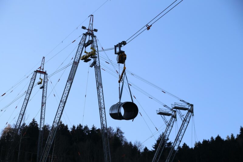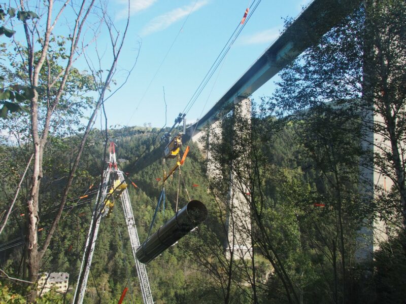 Für die Sanierung einer Druckrohrleitung in der Nähe von Innsbruck, Österreich wurde eine leistungsstarke Seilkrananlage von LCS Cable Cranes installiert, welche sich direkt unter der berühmten Europabrücke, eine der größten Brücken des Kontinents, befand.