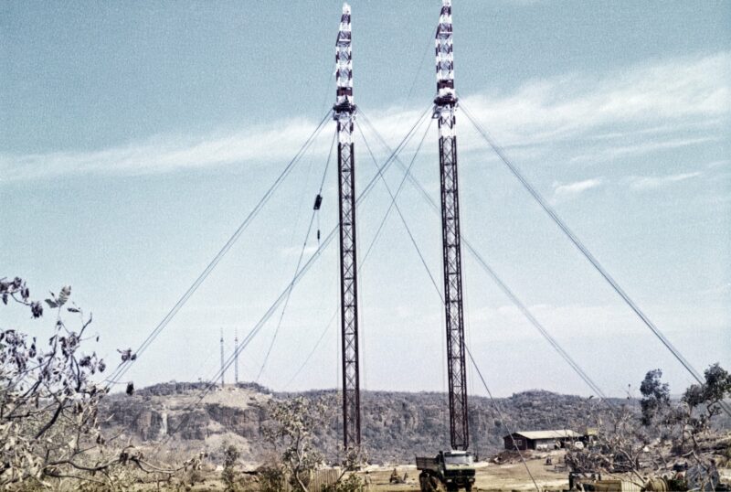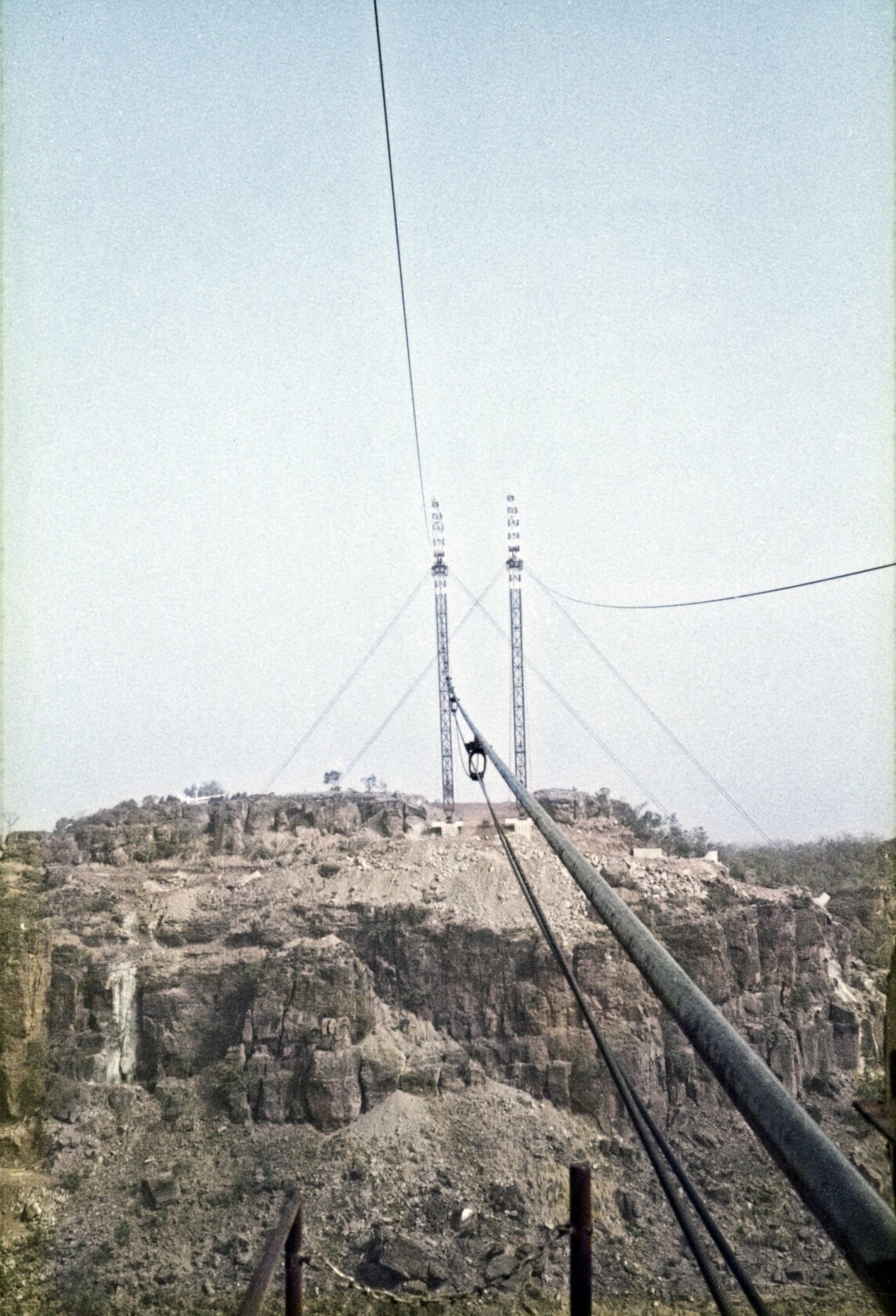 Die zwei schwenkbaren Kabelkrane für den Manantali Damm in Mali, Westafrika verfügten über eine sehr große Spannweite von 1620 m. Die 100 m hohen Masten konnten, mit durch Winden angetriebene und mehrfach eingescherte Schwenkseile, um ca. 15° geschwenkt werden, wodurch ein rechteckiger Arbeitsbereich ermöglicht wurde.