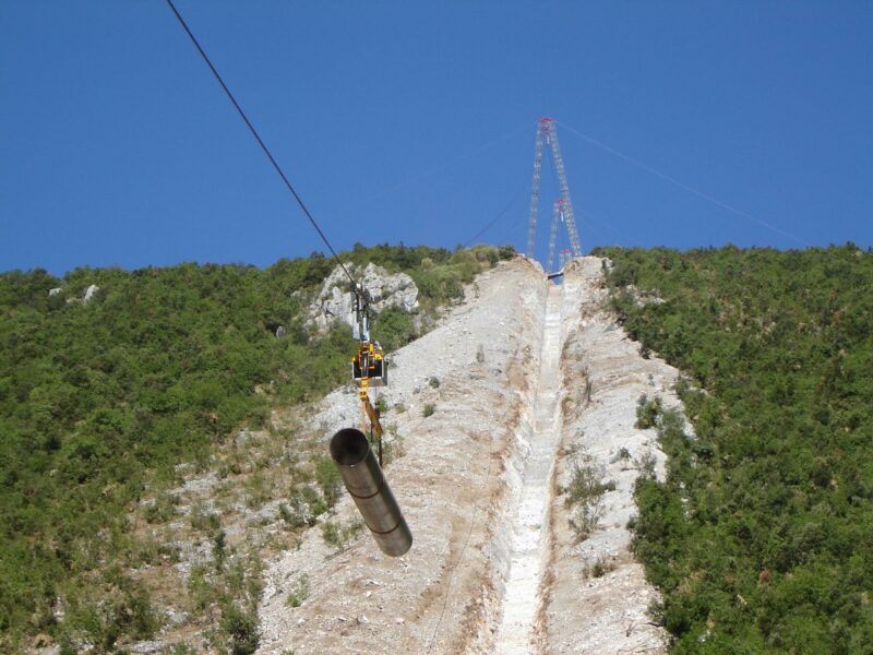 Für den Bau der Martirano Morano Gas Pipeline im Süden Italiens lieferte LCS eine 12 to Seilkrananlage. Die Aufgabe bestand in der Installation und dem Betrieb der Anlage, welche Rohre, Sandsäcke und Füllmaterial für den Pipelinebau transportierte. Mittels des Systems konnten die Rohre für Schweißarbeiten in Position gehalten werden.