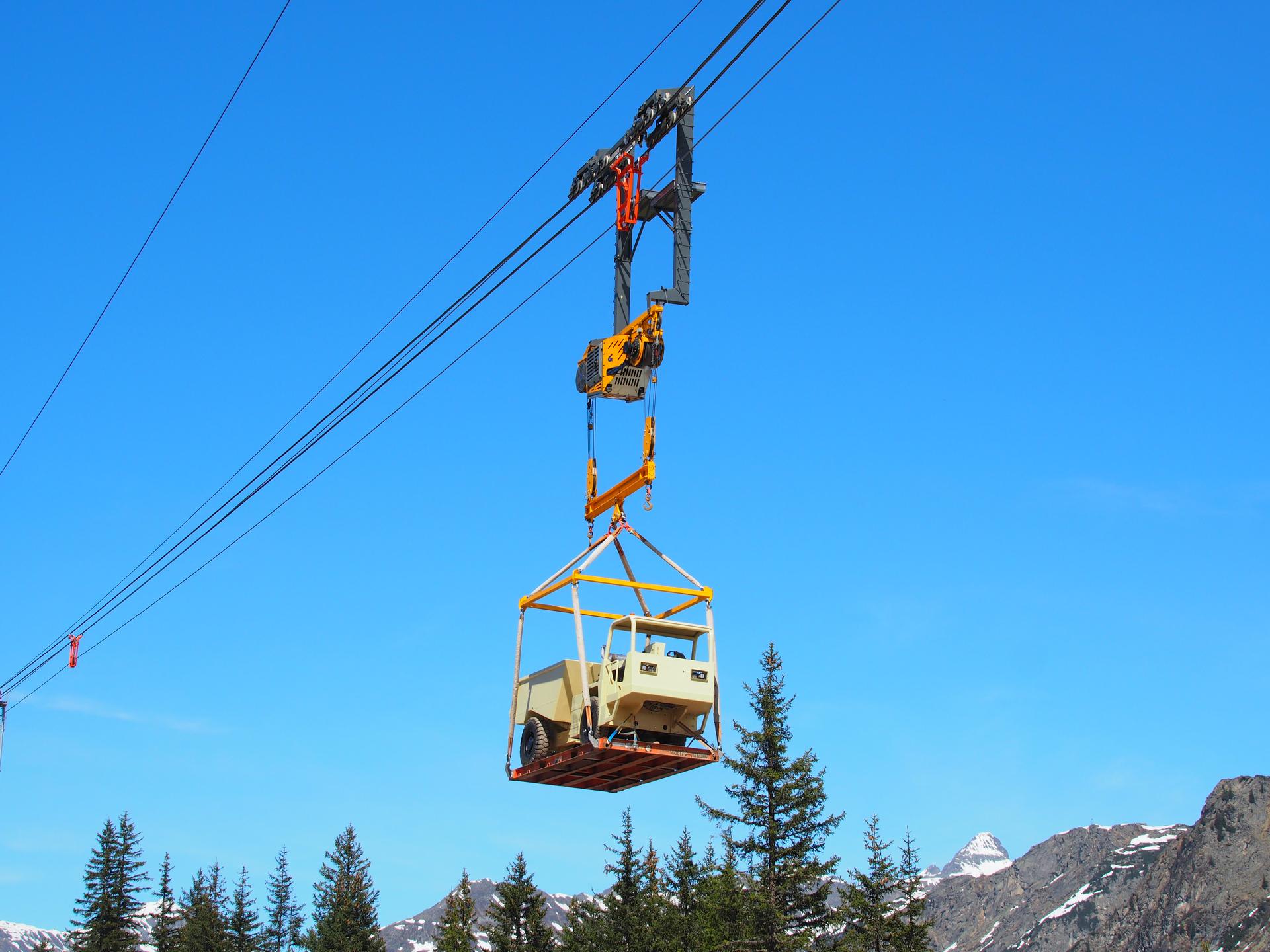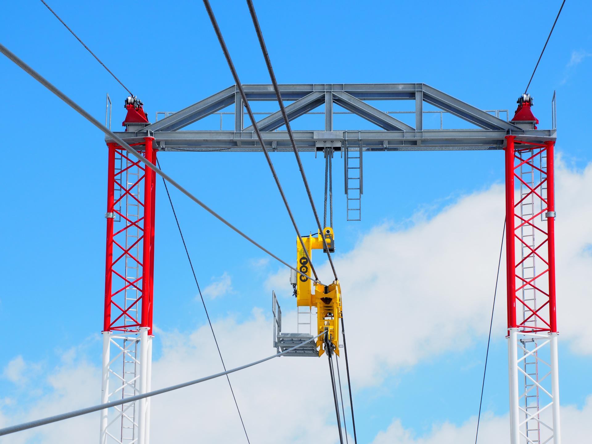 Die Anlage mit innovativer Stützenkonstruktion (mit zwei Stützenhalteseile, die von der Talstation bis zu Bergstation reichten) hatte eine beachtliche Länge von 2.640 m. Die Seilkrananlage verfügte außerdem über einen Umlaufantrieb, mit zwei 400 kW (insgesamt 800 kW) starken elektro-hydraulischen Antrieben und konnte Lasten mit über 6 m/s transportieren.