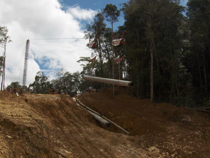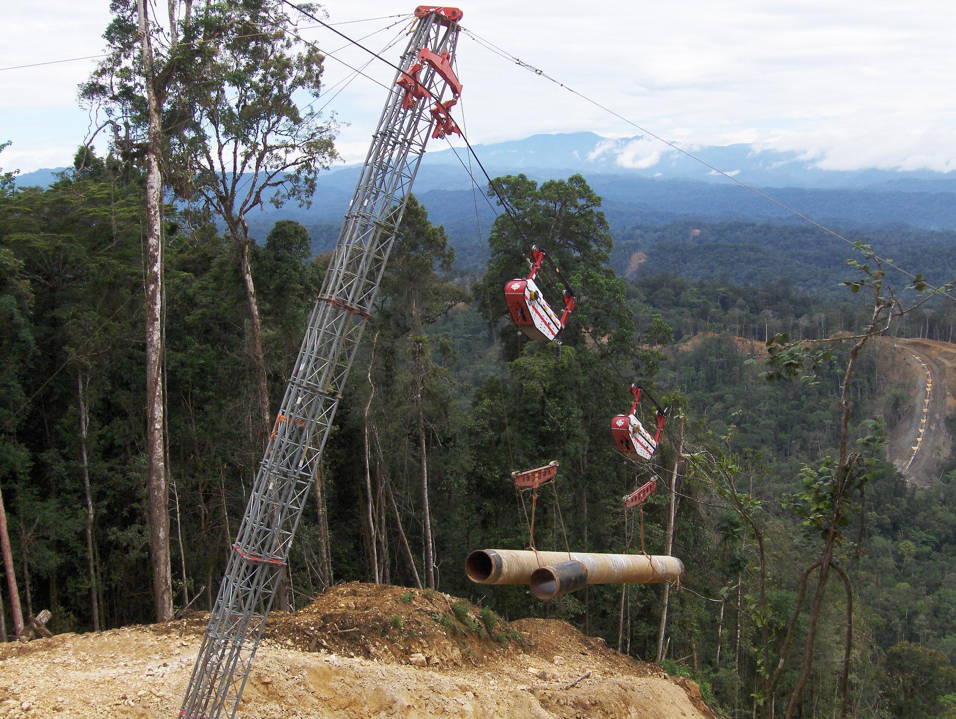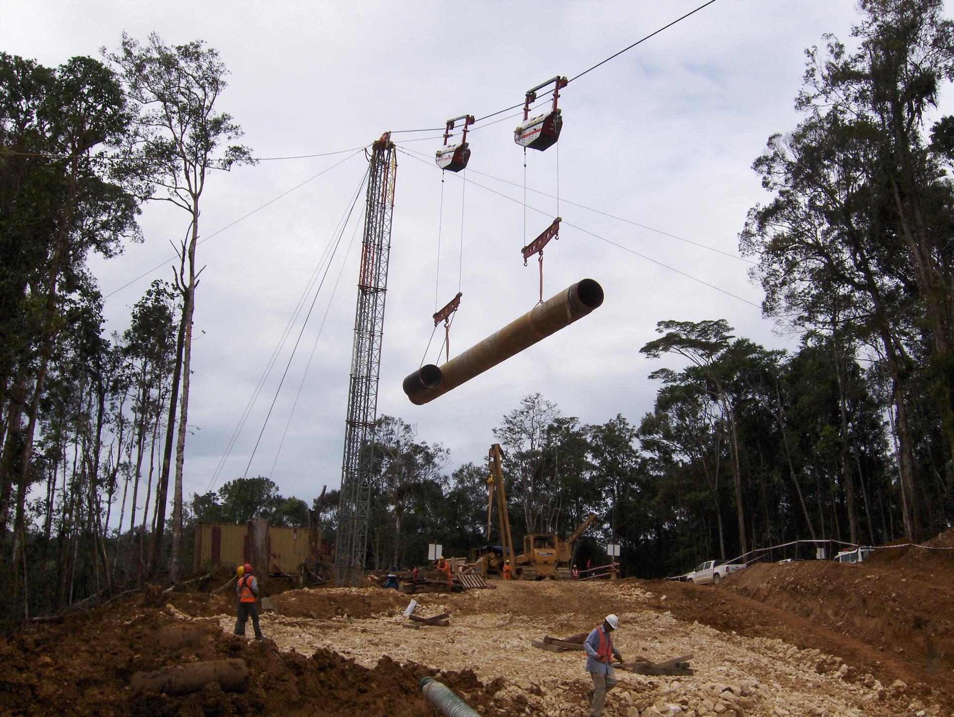 Für den Bau der PNG LNG Onshore Pipeline, welche durch Papua-Neuguinea verläuft, lieferte LCS zwei Seilkrananlagen mit je 8 to Nutzlast, um Rohre und diverse Baumaterialen zu transportieren. Die zwei Systeme kamen auf einer Gesamtlänge von 1.000 m durch den Urwald zum Einsatz, um die Umwelteinwirkungen so gering als nur möglich zu halten. LCS war zuständig für die Installation und den Betrieb der Anlagen vor Ort. Des Weiteren kamen Schreitbagger zum Einsatz, welche das Gelände zur Verlegung der Rohre vorbereiteten.