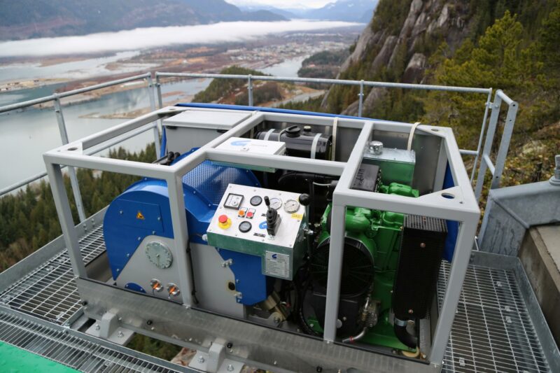 Eine Bergewinde BGW1500 wurde an einer der Stützen der Sea to Sky Gondola in Squamish, Kanada installiert. Die Kabinenbahn, welche auf Meereshöhe startet, überwindet einen Höhenunterschied von 885 m. Sie verfügt über ein Sicherheitssystem, mit dem im Ernstfall Passagiere aus den einzelnen Kabinen geborgen werden können. Bei der Evakuierung wird Rettungspersonal mit der Seilwinde am Tragseil entlang zu den betroffenen Kabinen geseilt, um von dort aus die Evakuierung vorzunehmen. Die einfache, kompakte und sichere BGW1500 verspricht absolute Zuverlässigkeit – dank einer Vorglühanlage kann die Seilwinde auch problemlos bei niedrigsten Temperaturen gestartet werden – schließlich muss sie dann funktionieren, wenn es bei der Kabinenbahn Zwischenfälle gibt.