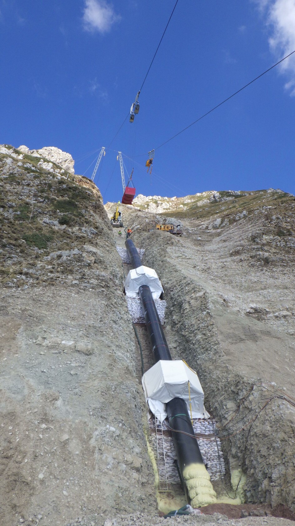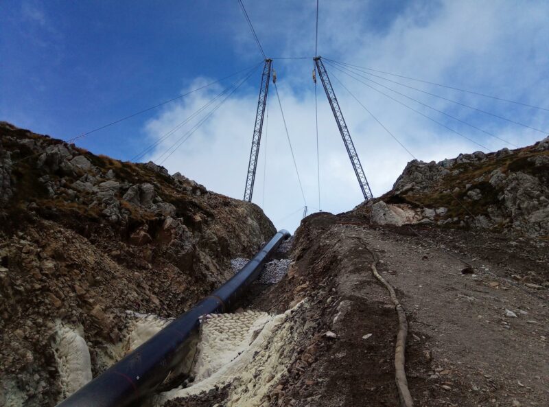 Die spannendste Aufgabe wartete auf LCS nach Vollendung der ersten vier Abschnitten – eine Teilstrecke im Hochgebirge auf über 2.000 m über dem Meeresspiegel mit einer Länge von 500 m. Die Strecke wurde mithilfe der 7 und 12 Tonnen Anlage, welche parallel zueinanderstanden, im Gravitätsmodus gebaut. Die leistungsstärkere Bahn transportierte die Rohre und etwaige Geräte für Schweißarbeiten zur gewünschten Stelle.