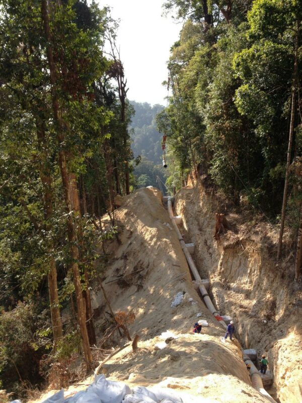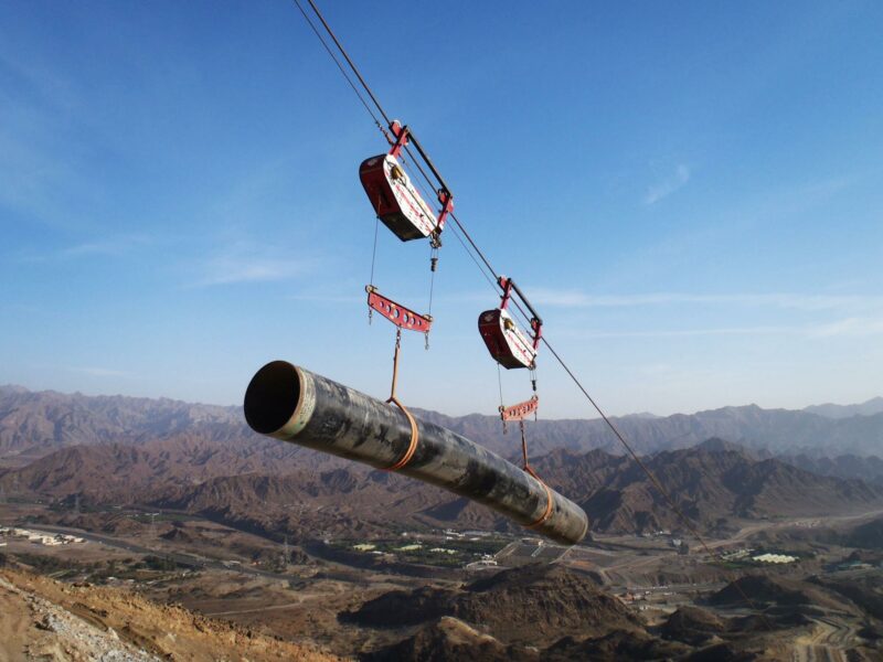 In Ostindien verläuft die Uran Chakan Pipeline teilweise über 60° steile Abschnitte. Ein Abschnitt, der überwunden werden musste, hatte eine Länge von ca. 1,1 km und verlief über felsiges und steiles Gelände. Damit der Bau der Pipeline in diesem Umfeld ermöglicht werden kann, wurden zwei Seilkrananlagen von LCS installiert, um die Rohre auf sichere und umweltfreundliche Art und Weise transportieren zu können. Die Seilkranlagen boten die passende Lösung, denn auch die Umweltauflagen für Bautätigkeiten in dieser Gegend waren sehr streng, bspw. durfte der ROW nur eine Breite von 8 m haben, was mit den Anlagen aber kein Problem darstellte.