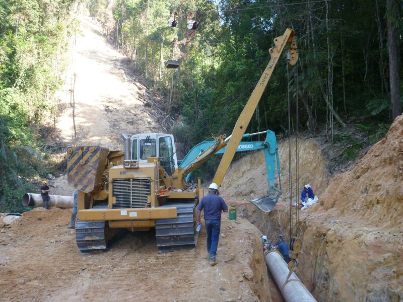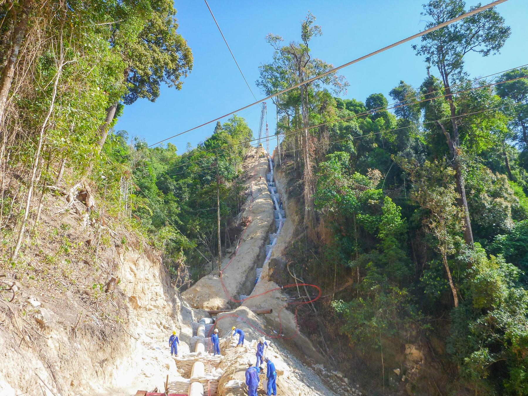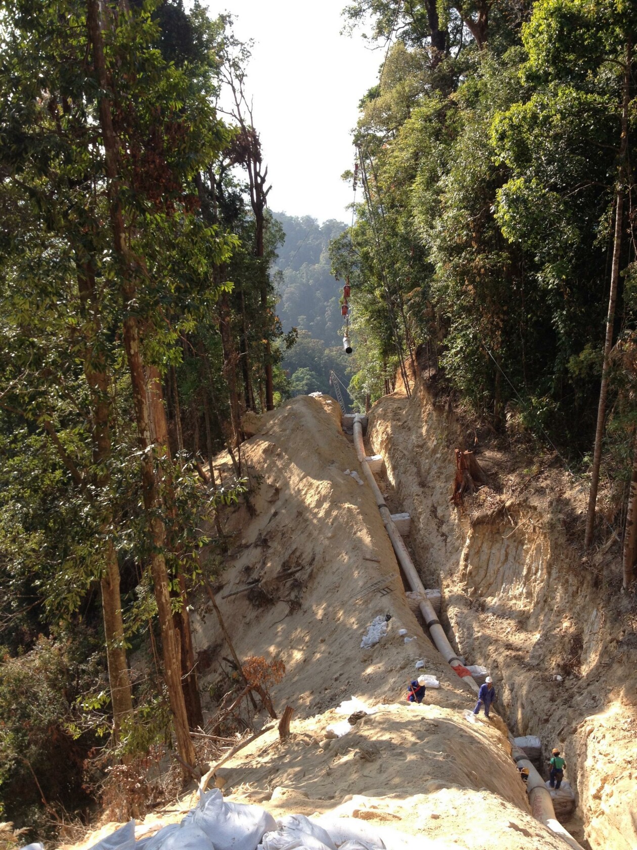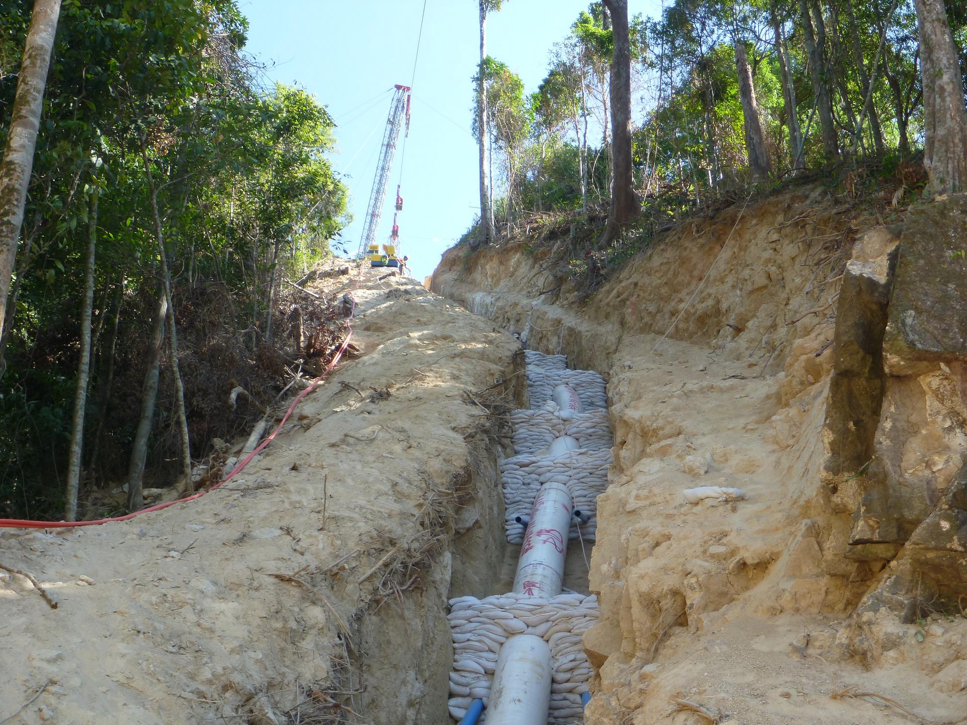 Um die beiden Projektabschnitte erfolgreich umzusetzen, wurde eine Seilkrananlage an verschiedensten Bereichen im unwegsamen Gelände, an denen die Pipeline verlegt werden sollte, montiert und betrieben. Die Anlage transportierte sowohl die Rohre und hielt sie in Position für die Schweißarbeiten, als auch Sandsäcke und Schüttmaterial zur Befüllung der Gräben. Beim Bau der Pipeline kamen Schreitbagger zum Einsatz, welche die Bodenvorbereitungen vornahmen.
