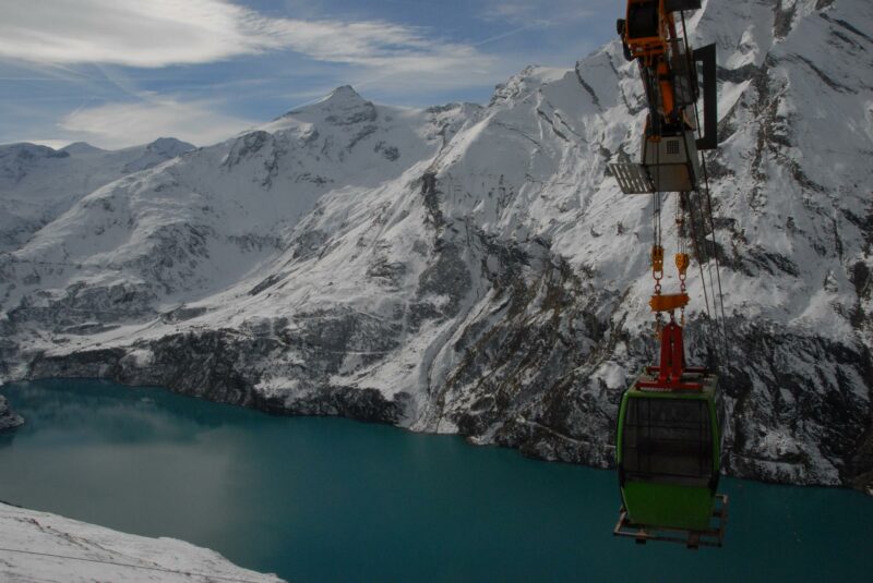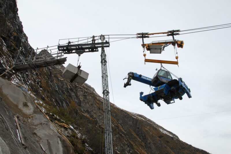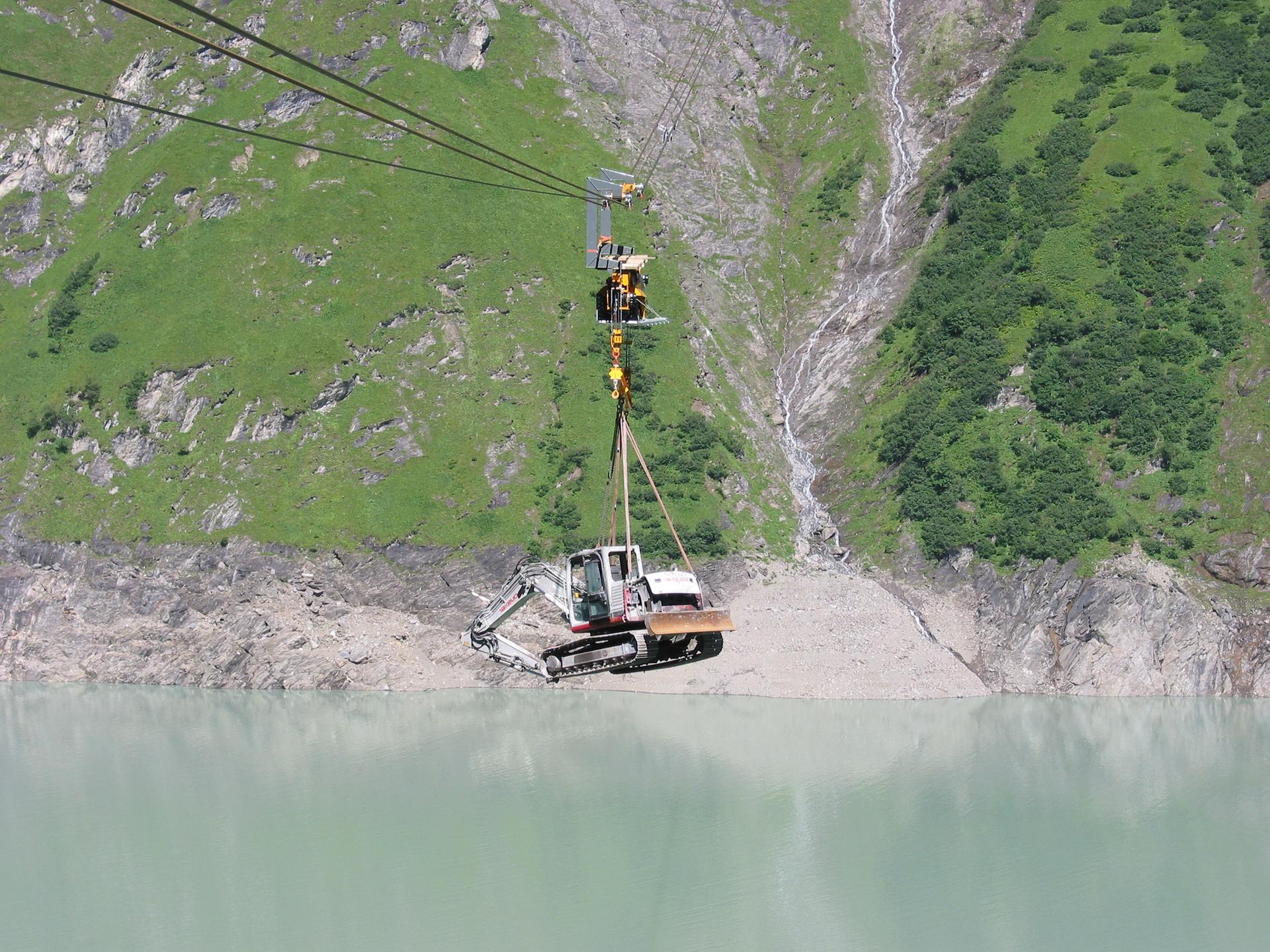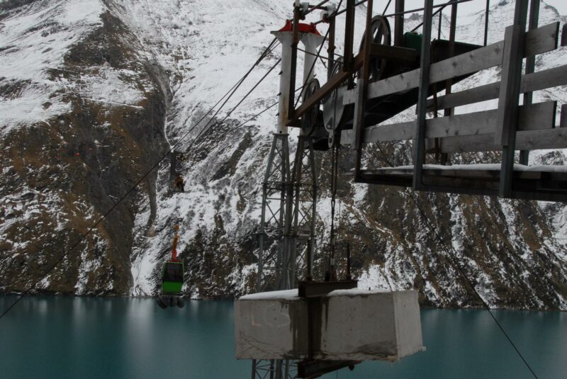 LCS Cable Cranes installed a cable crane system for the construction of the hydro power plant in Kaprun. The system was operated 24 hours a day to transport construction material and manpower to the surge chamber “Oberkammer” at over 2,000 m sea level. Since the construction site was located above a water reservoir, the system was the only way to transport materials to the site.