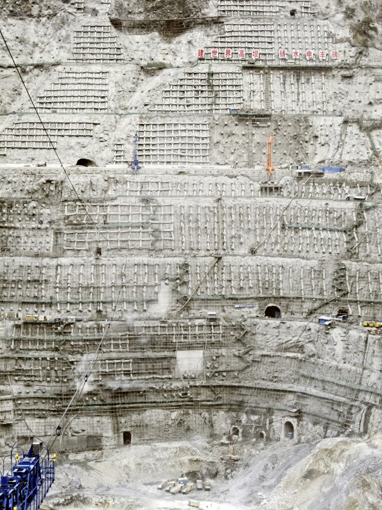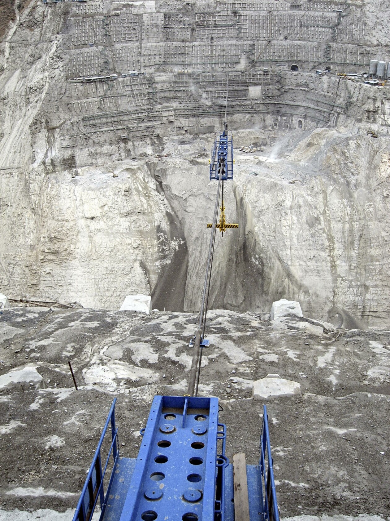 The cable crane systems used to build the Jinping Dam in China are classic parallel systems with machine carriage and counter carriage. As the Jinping Dam is one of the highest dams in the world with a height of 305 m, the systems had an extremely large lifting height of 340 m. Due to the relatively short construction time and the large concrete volume of 4.8 million m³ to be placed, four identical cable crane system with a payload of 30 to each were used.