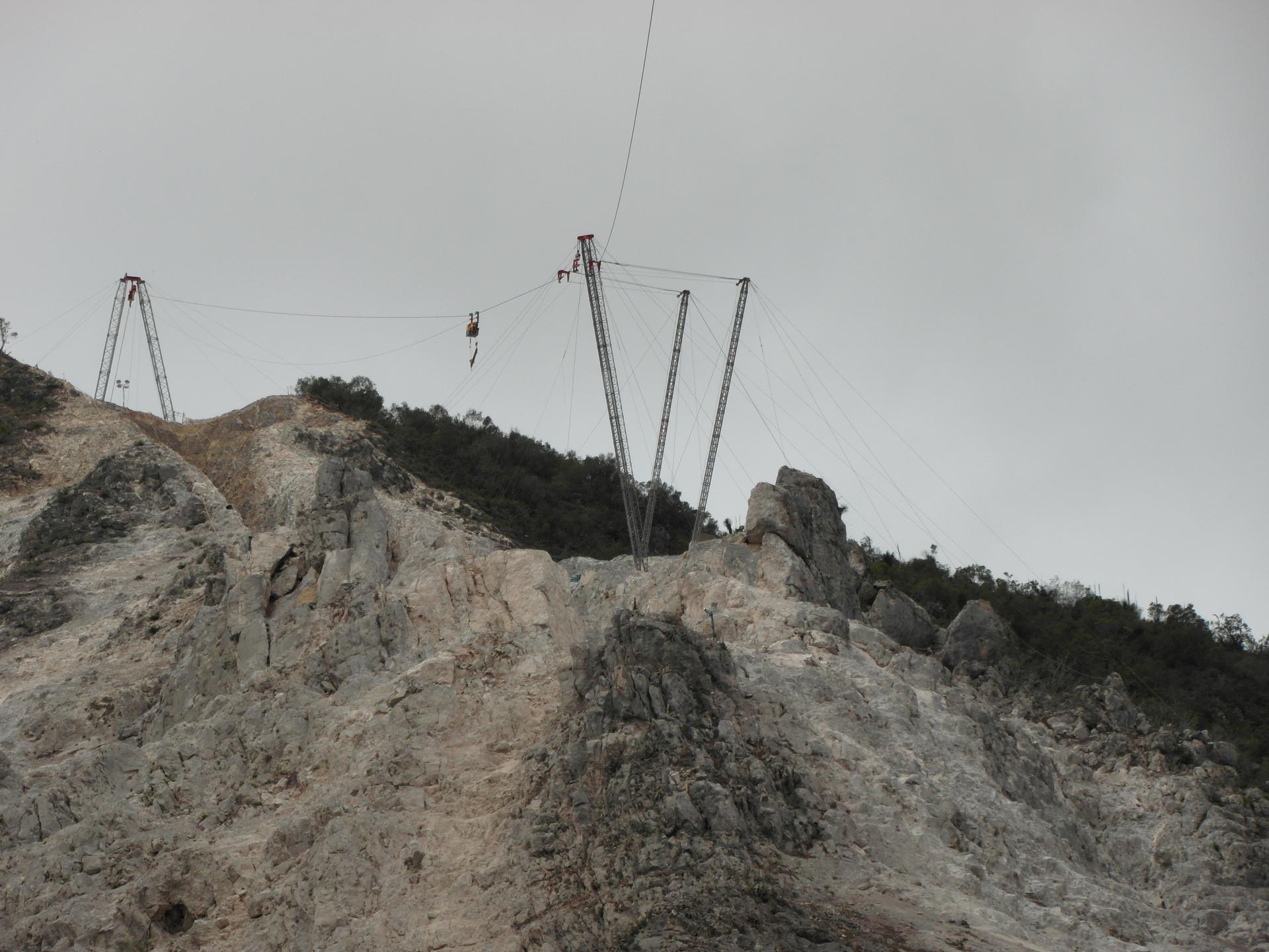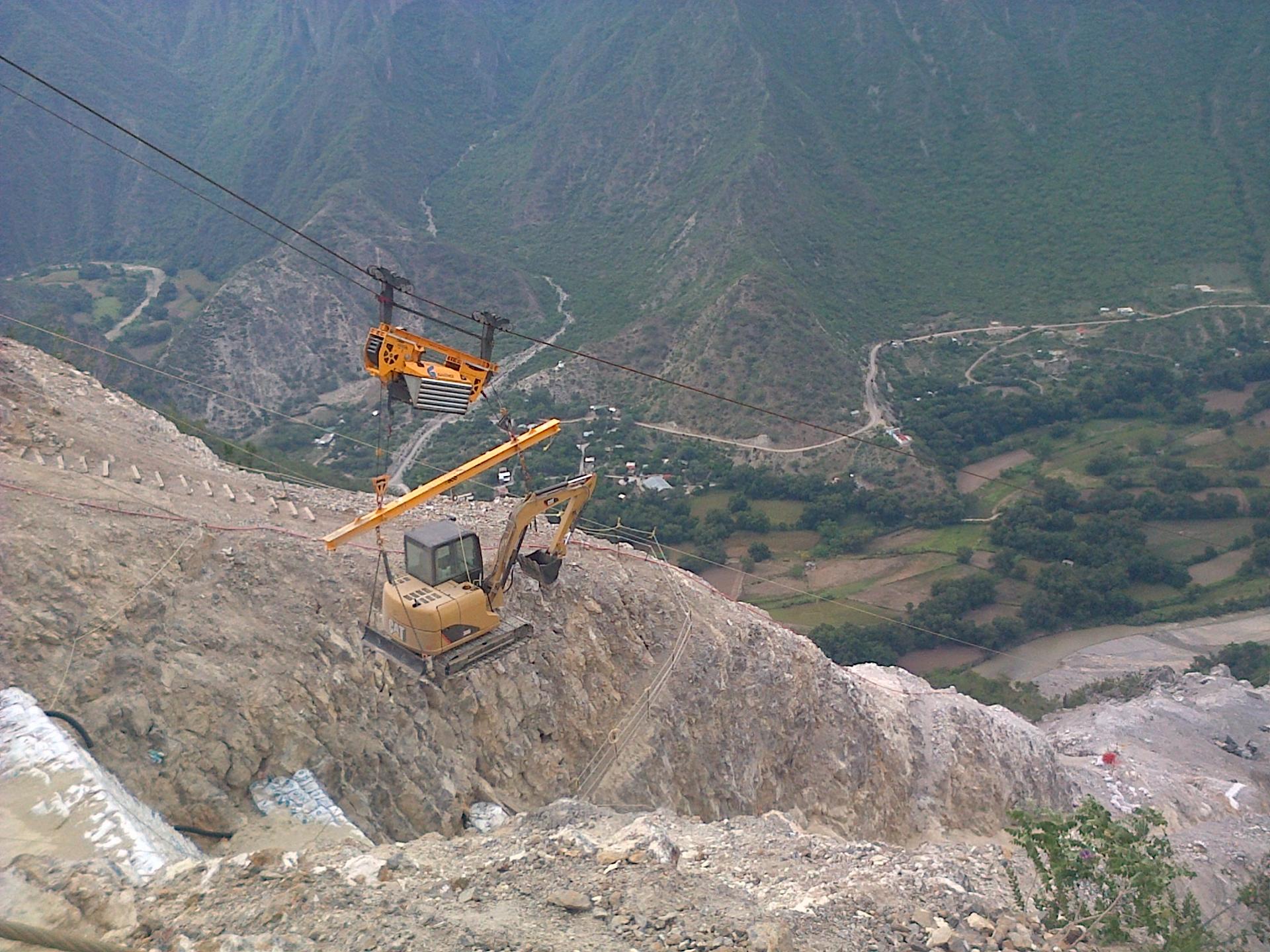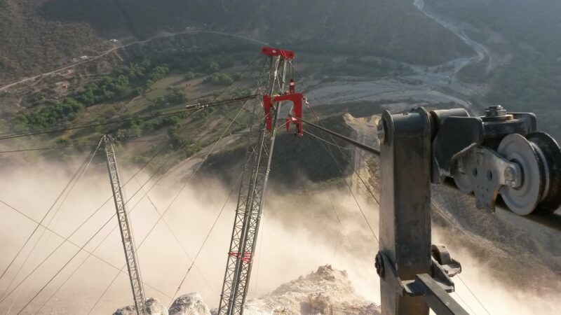 En la región mexicana de Hidalgo, se instaló un sistema de cable-grúa de LCS para la construcción de un gasoducto en un terreno escarpado. El infranqueable terreno donde se instaló el cable-grúa de material, para transportar maquinaria de construcción y sobre todo material de construcción y tuberías, era muy escarpado (más de 70°) y muy rocoso. Además, se sumaron difíciles condiciones climáticas durante la instalación y operación del sistema, que transportó cargas pesadas a más de 750 m y haciendo una curva después de aprox. 300 m.