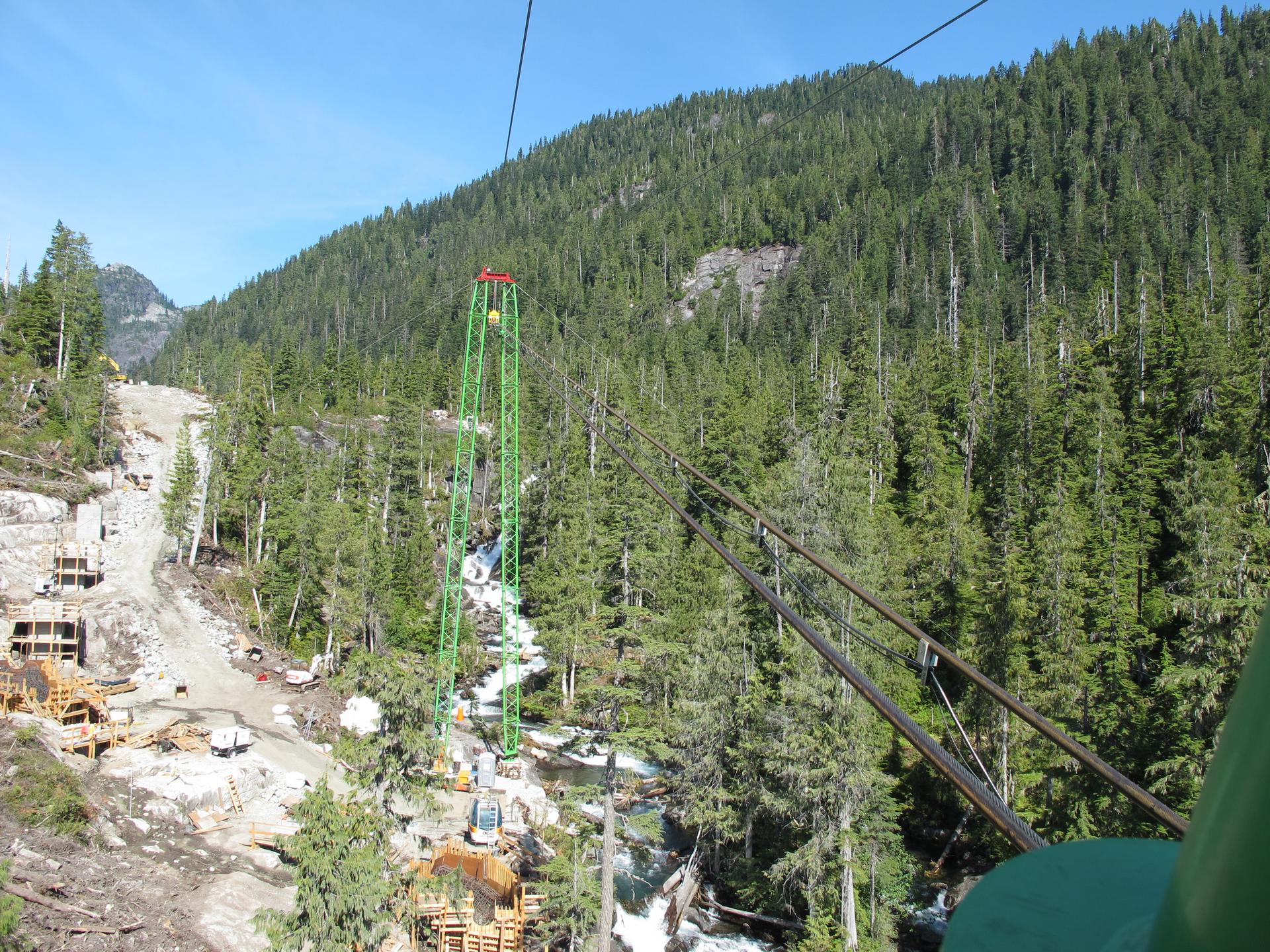Primeiro Cable Crane na Canadá para a construção da usina hidrelétrica.
